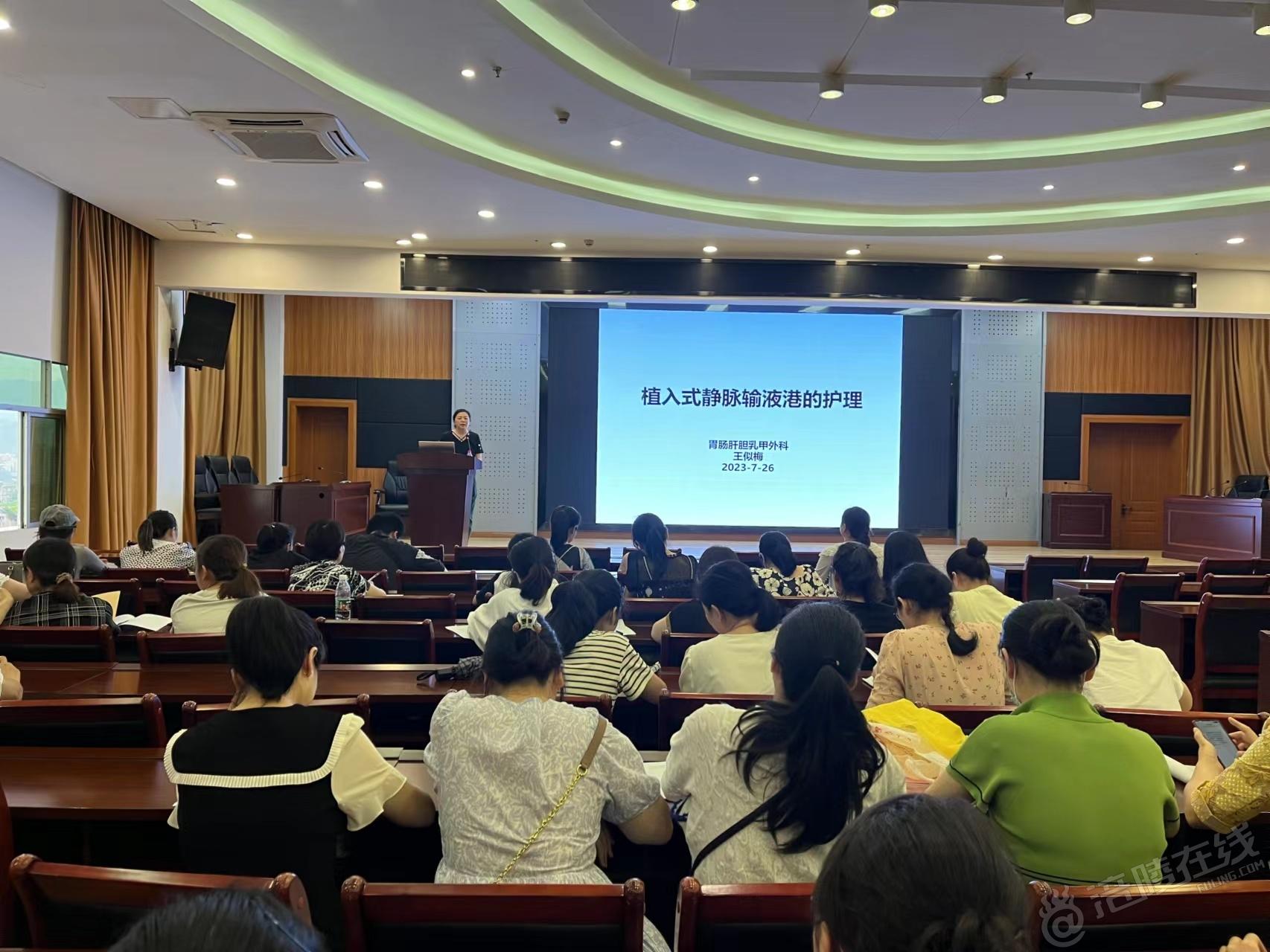 曾有一名患者因乳腺癌入院治疗,由于惧怕反复静脉穿刺的痛苦,想要进行输液港的治疗。“输液港是一种全植入的、埋植于人体内的闭合输液系统,能够迅速稀释药物浓度,避免对血管壁的刺激和损伤。当时我院尚未开展这项技术,但是都具备一定的理论知识,为满足患者的就医需求,我立即请求购买专用医疗器械,并邀请专业老师前来指导,为增加安全性,还对患者进行了术中心电定位技术。”王似梅说道。在后面的一次偶然,听闻入住内科的一名患者也有输液港的需求,于是王似梅申请了继教项目,对全院护士进行授课,组织大家学习理论知识、观看操作视频,并进行现场一对一指导。从此以后,全院开始普及输液港这项护理技术。