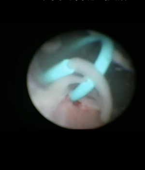 置入输尿管内支架后,脓液喷涌而出(术中照片)