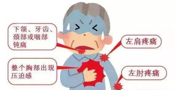 部分人可表现为颈部、肩部、左侧肢体、后背、上腹部、下颌及牙齿等部位的疼痛,也可出现胸闷、气喘、乏力等不适症状,其他症状还可能有烦躁不安、冒冷汗、恶心呕吐、心慌恐惧,偶有濒死感甚至眼前发黑、晕厥等。