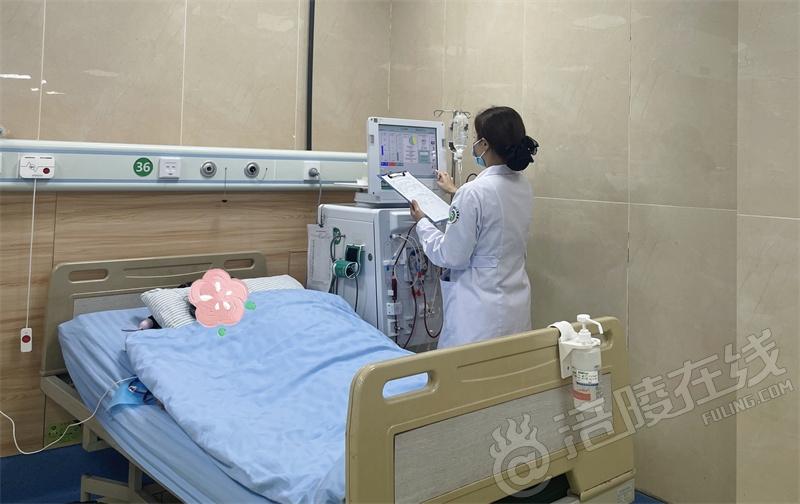清晨的涪陵区人民医院肾脏内科血液透析室里,尿毒症患者正安静地接受治疗,手臂上一条清晰可见的内瘘血管,是他们延续生命的“生命线”。诊室不远处,主任胡显芳正在为一位患者调整透析方案:“血流量调至250ml/分钟,超滤率不要超过1000ml/小时……”她的语气坚定却不失温柔,眼神专注而充满力量。